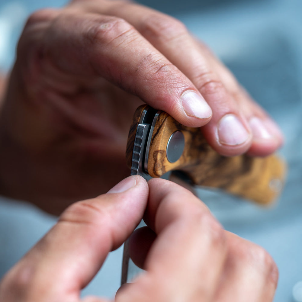 Jedes unserer Produkte kann mit einer Lasergravur auf verschiedenen Oberflächen personalisiert werden. Ob es sich um ein Gadget, ein Geschenk oder ein Verkaufsprodukt handelt, wir arbeiten gerne mit Ihnen zusammen, um ein maßgeschneidertes Angebot zu erstellen, das Ihre Marke bestmöglich fördert. Machen Sie Ihr Messer jetzt zu etwas Besonderem!