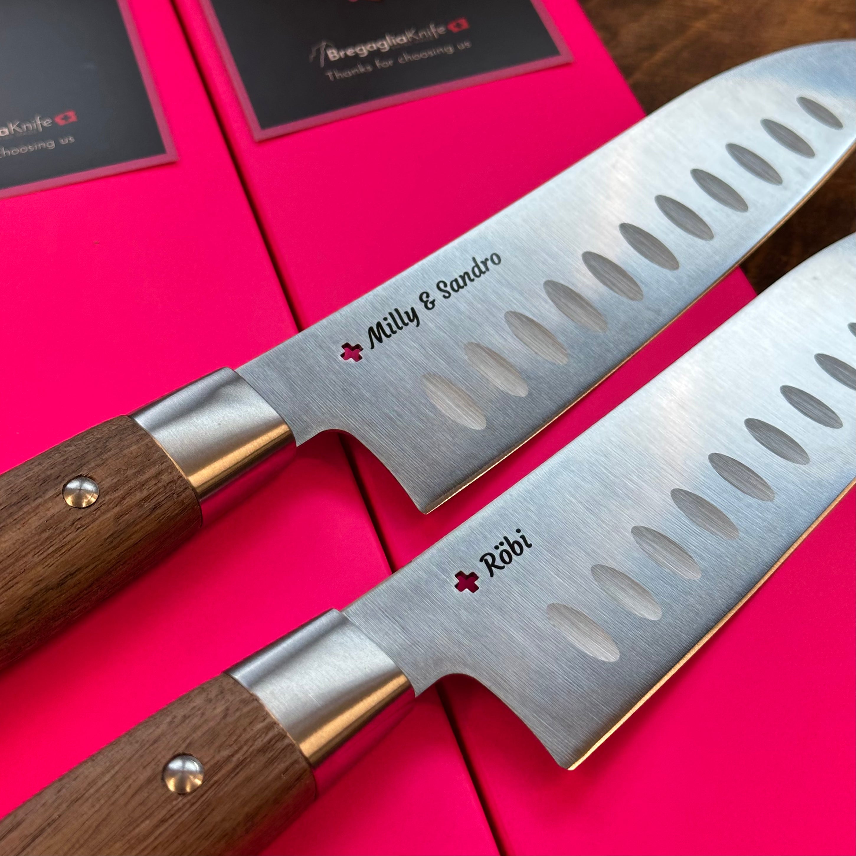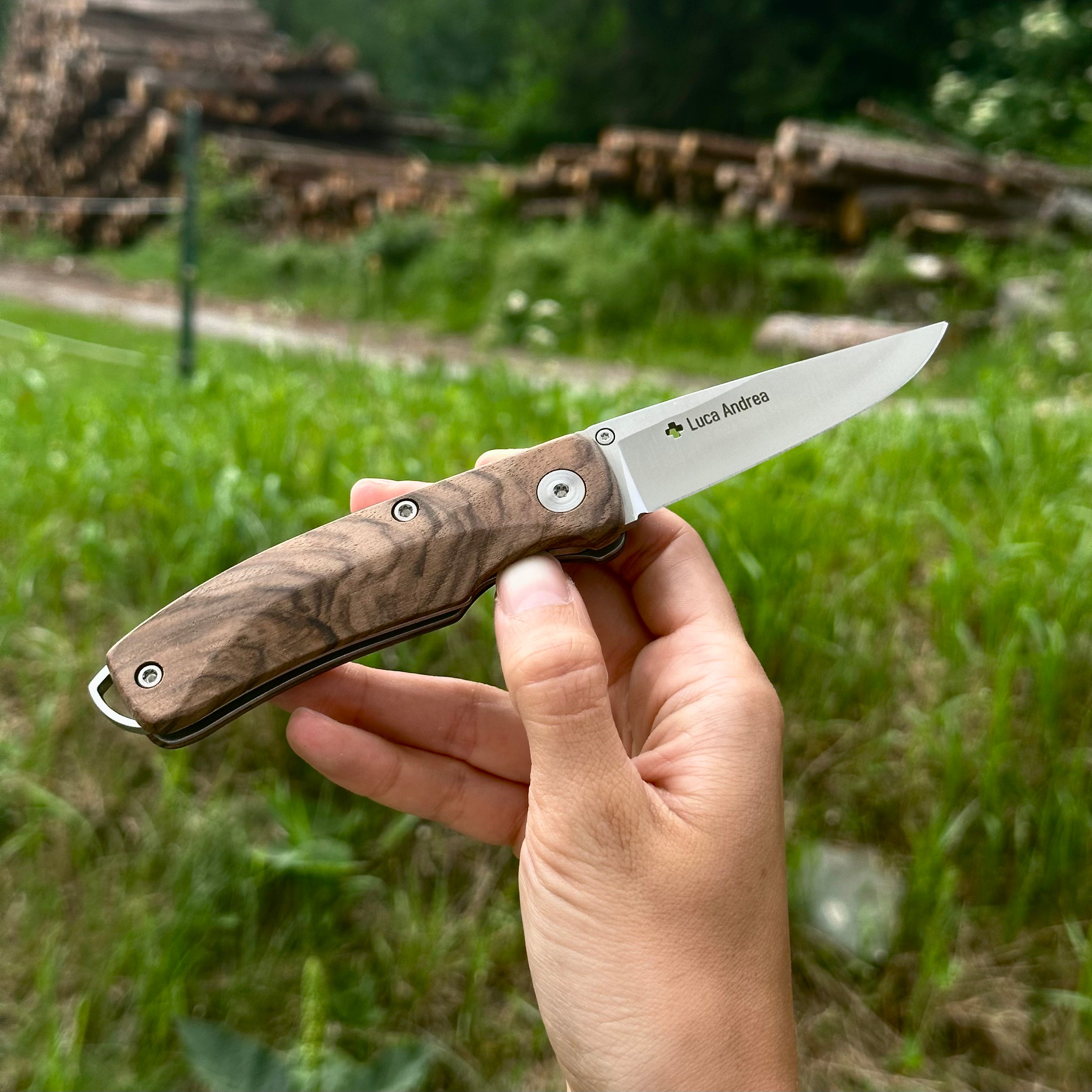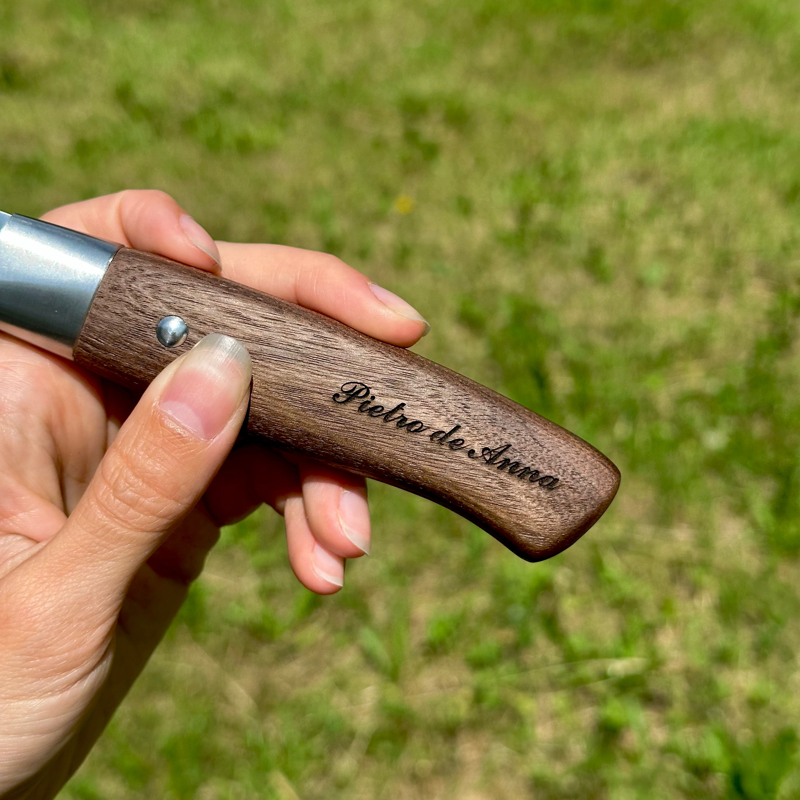 Wir bei Bregagliaknife glauben, dass jedes Messer einzigartig sein kann. Aus diesem Grund bieten wir den Service der Lasergravur an. Du kannst personalisierte Gravuren auf dem Griff oder der Klinge hinzufügen, und das Hinzufügen von Schriftzügen ist bei jedem Messer kostenlos. Eine perfekte Gelegenheit, dein Produkt noch spezieller zu machen, ohne zusätzliche Kosten.
