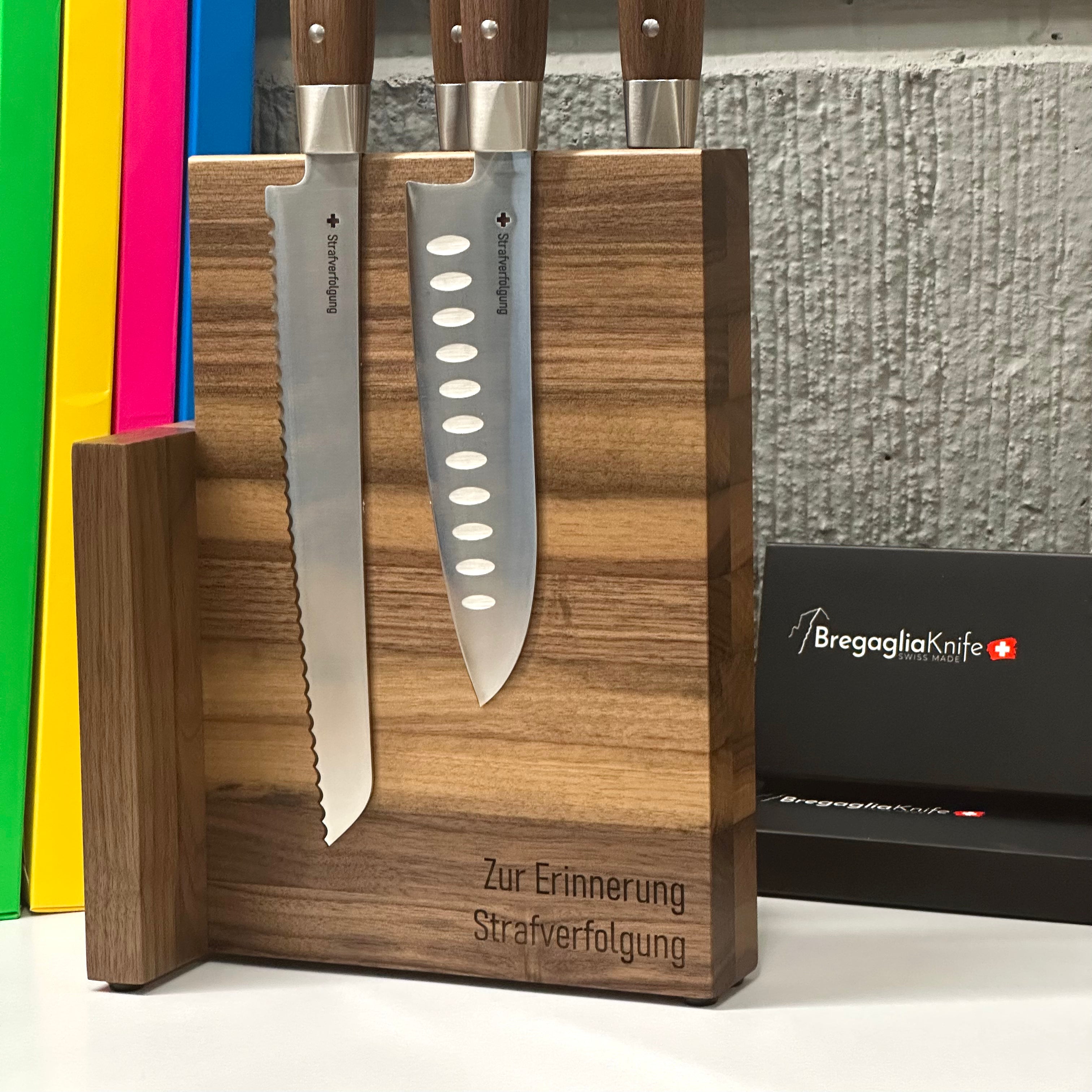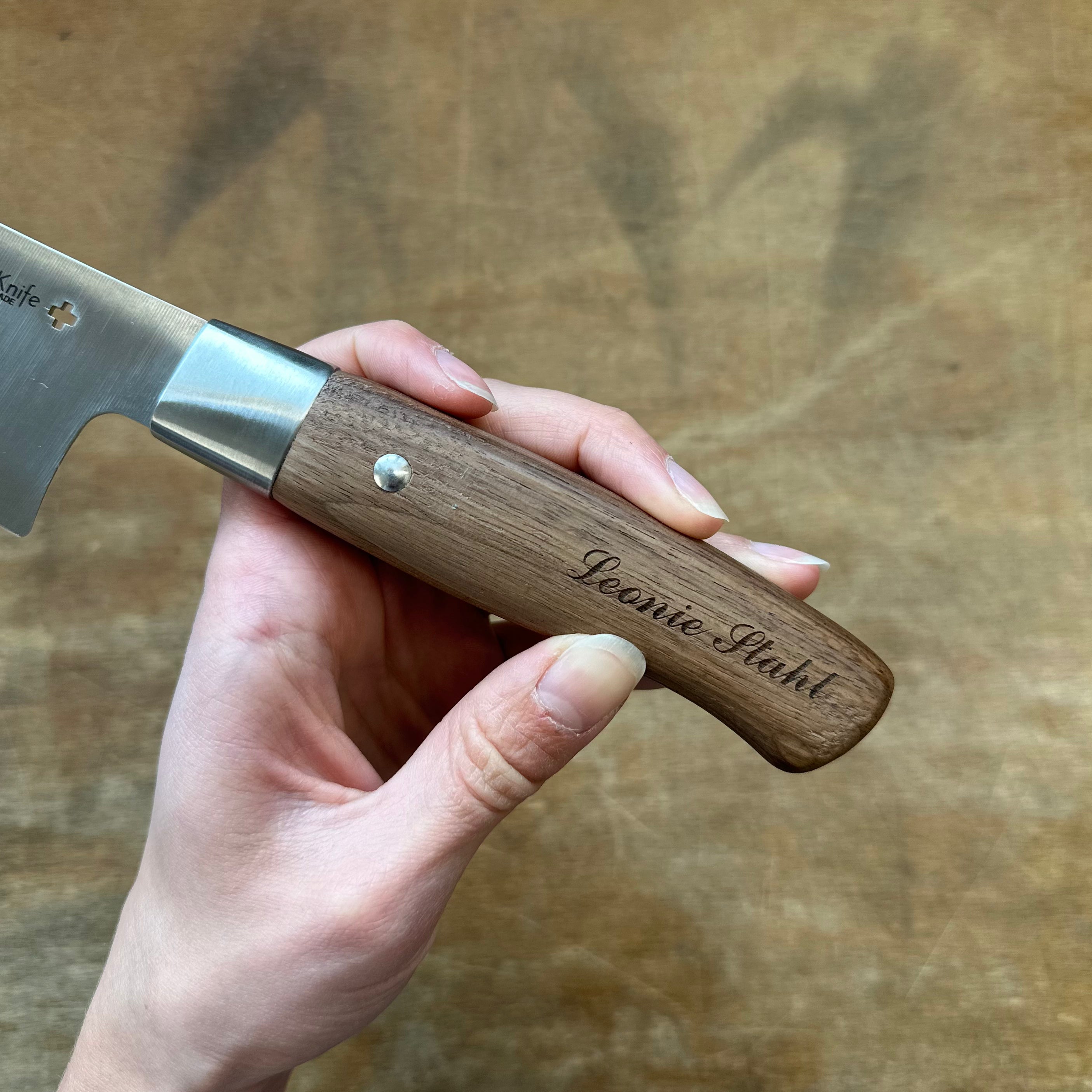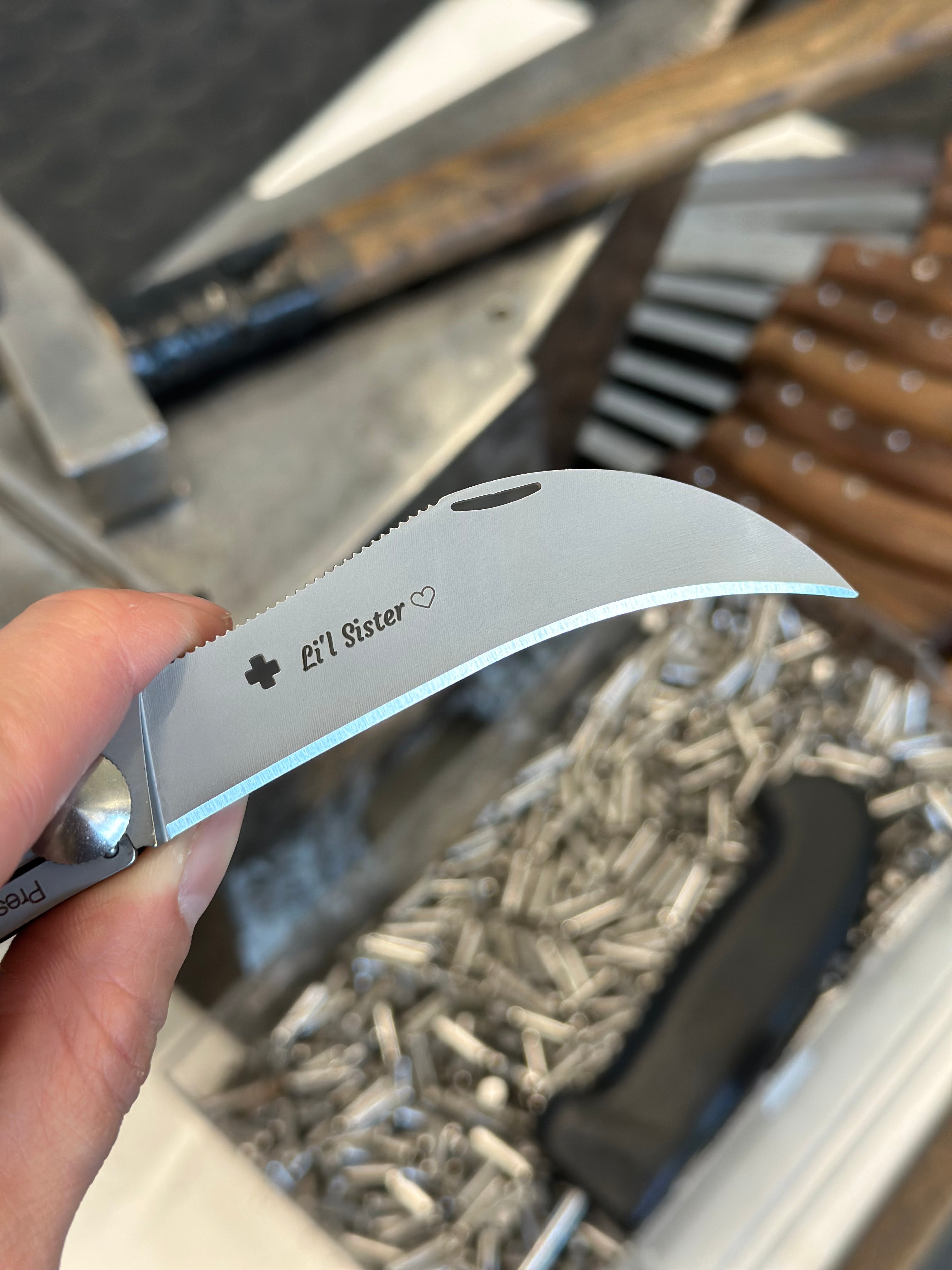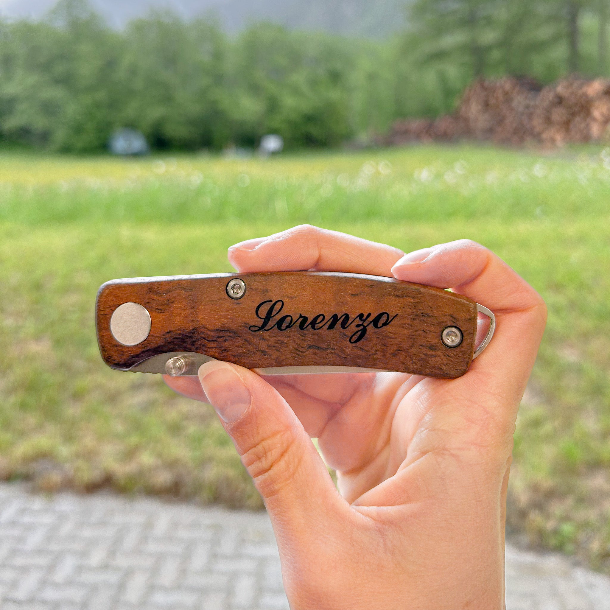 Wir bei Bregagliaknife glauben, dass jedes Messer einzigartig sein kann. Aus diesem Grund bieten wir den Service der Lasergravur an. Du kannst personalisierte Gravuren auf dem Griff oder der Klinge hinzufügen, und das Hinzufügen von Schriftzügen ist bei jedem Messer kostenlos. Eine perfekte Gelegenheit, dein Produkt noch spezieller zu machen, ohne zusätzliche Kosten.