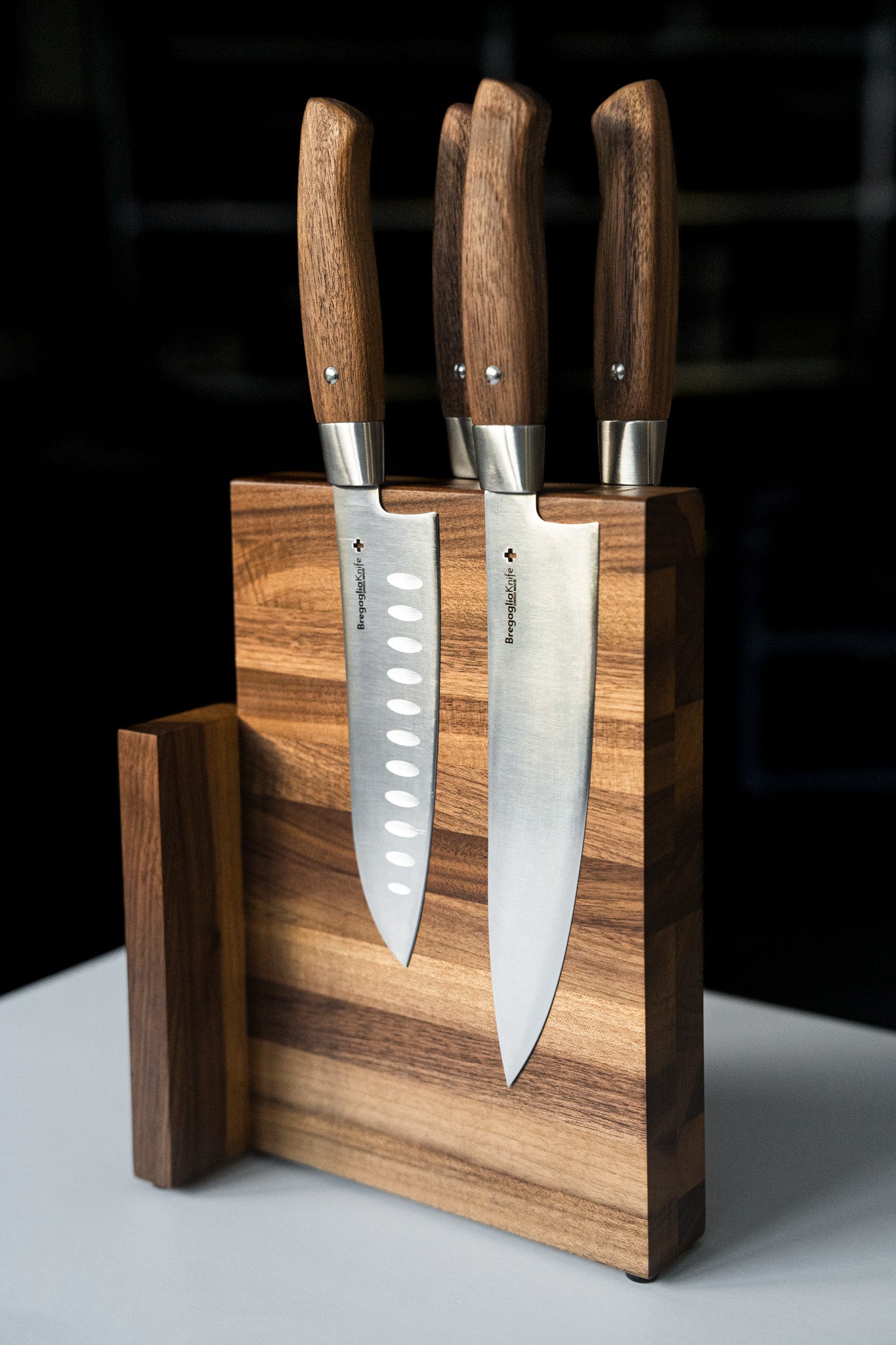 Die Griffe bestehen aus Walnuss, deren Maserung jedem Griff einen einzigartigen Charakter verleiht.