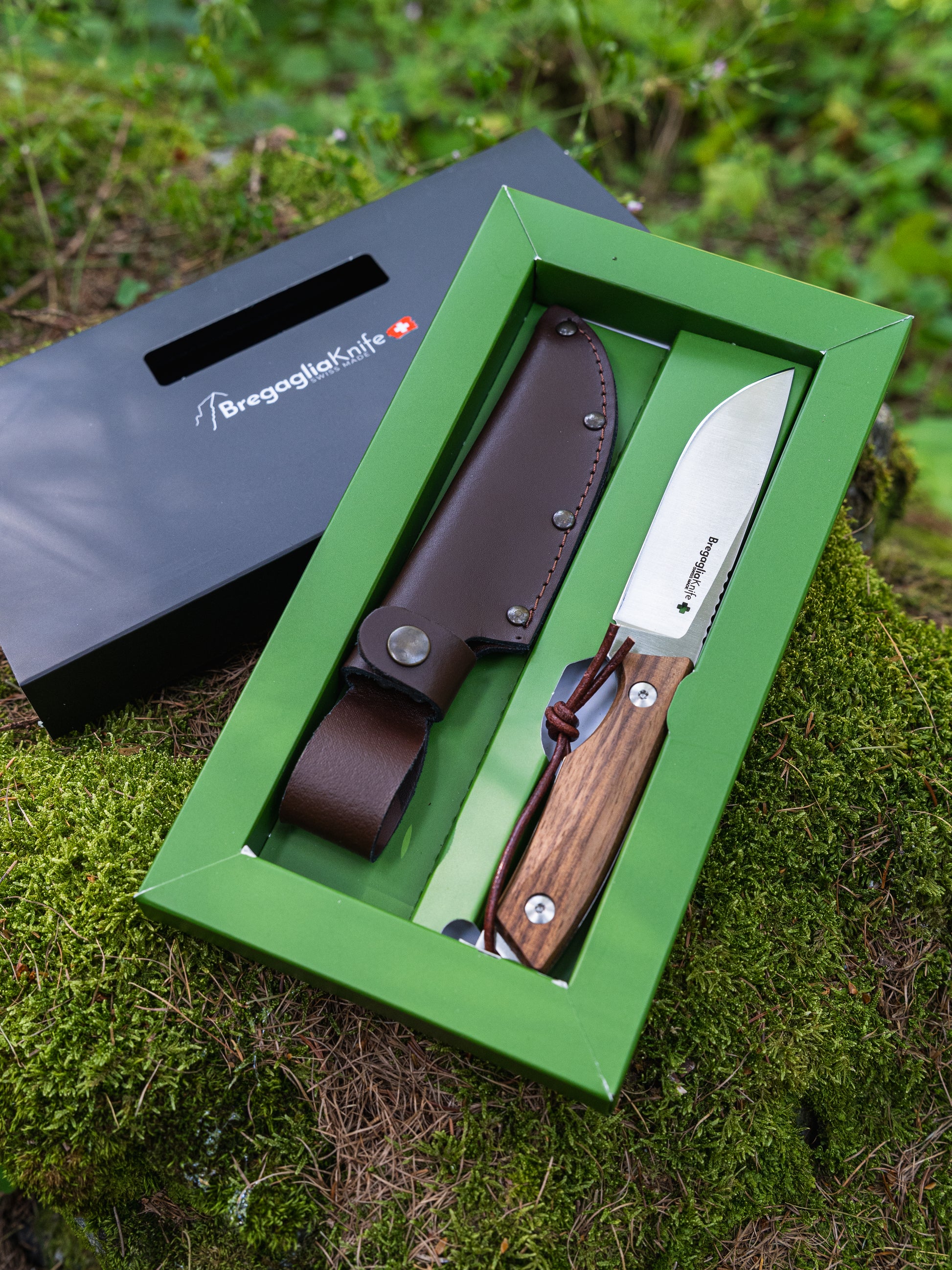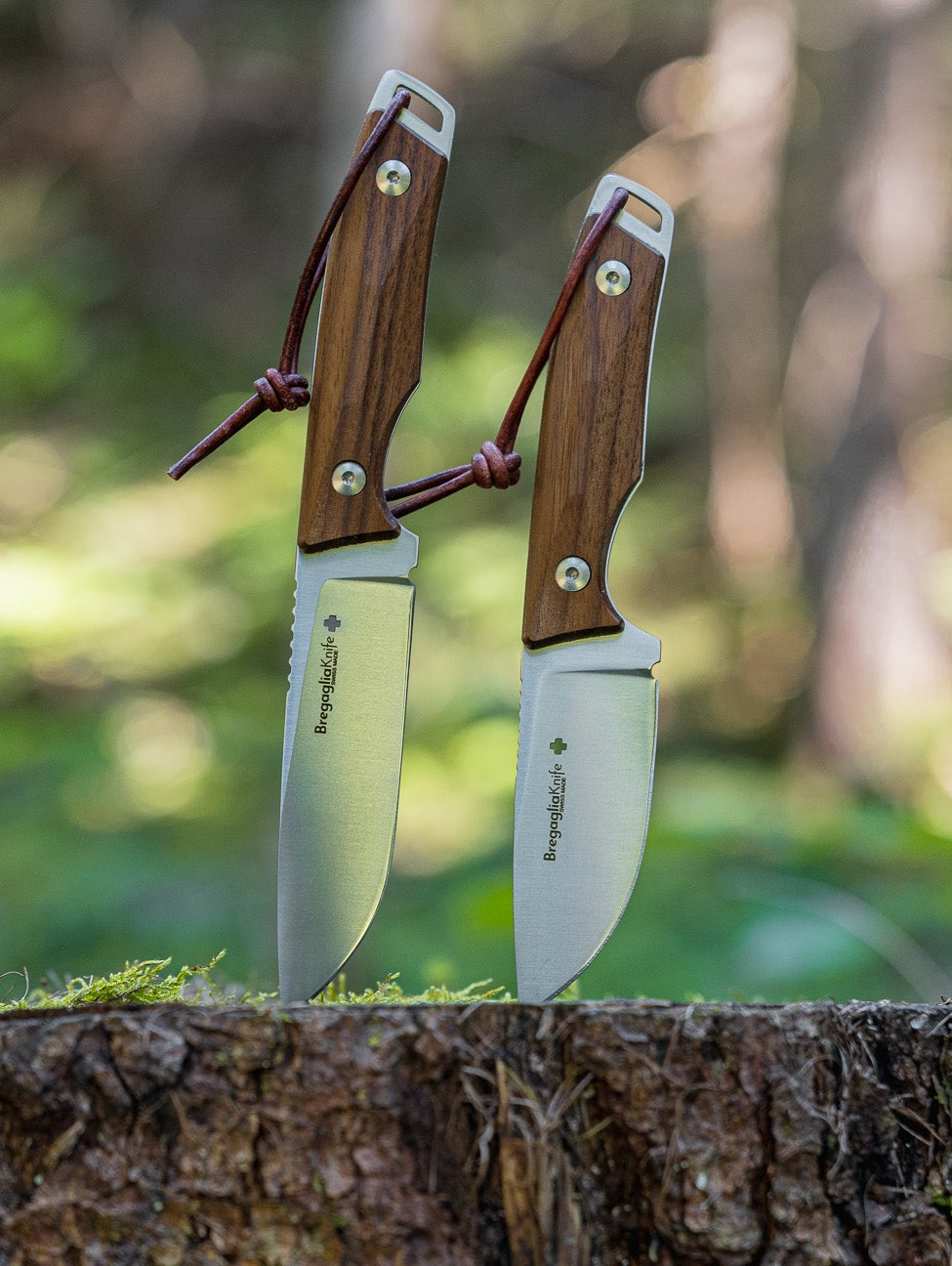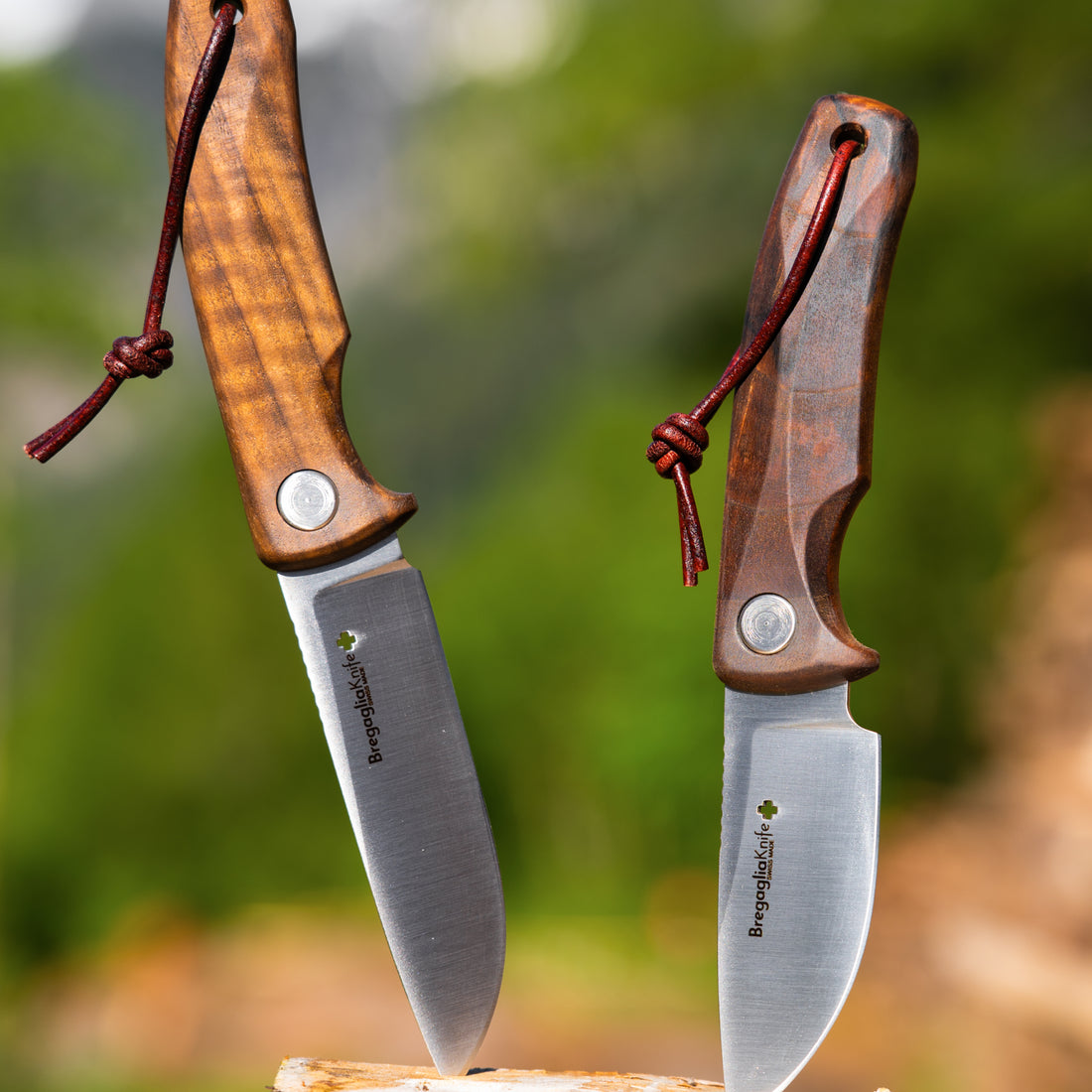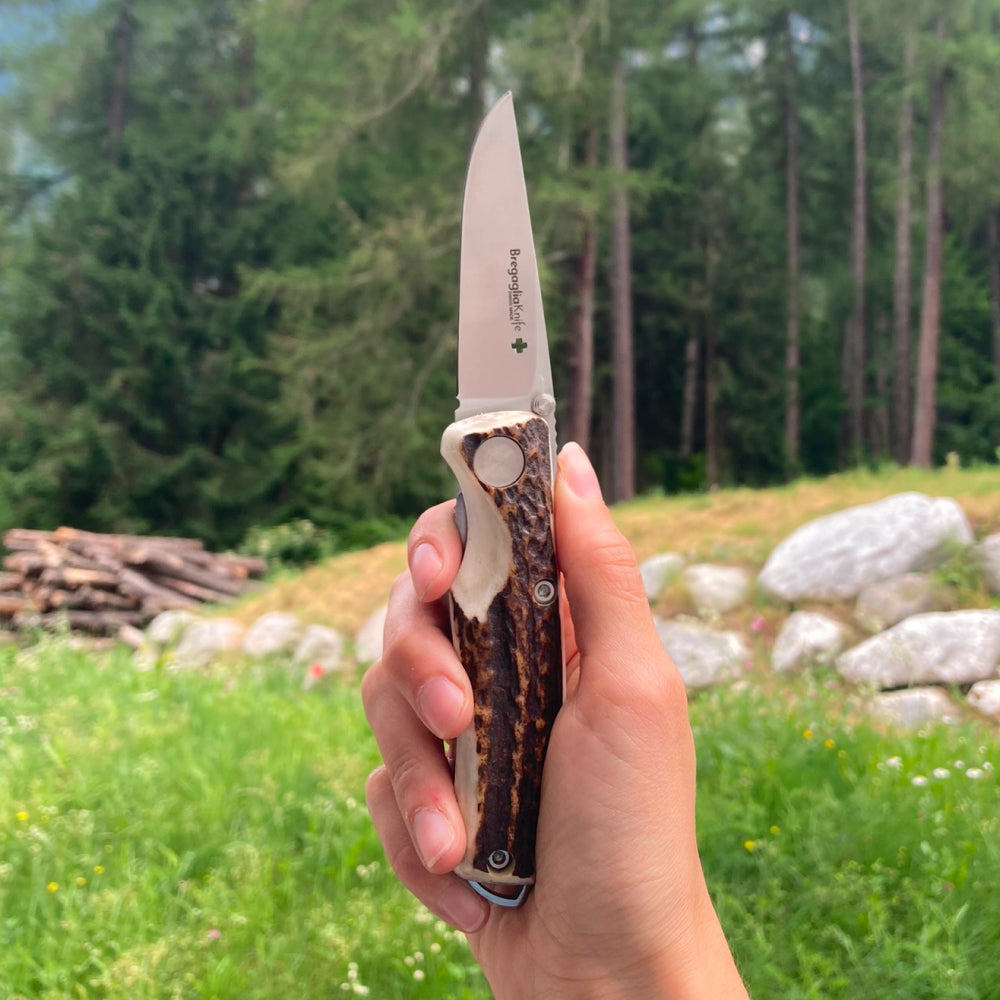 Der Griff ist in zwei attraktiven und hochwertigen Materialien erhältlich: wertvolles Walnussholz und echtes Rothirsch.