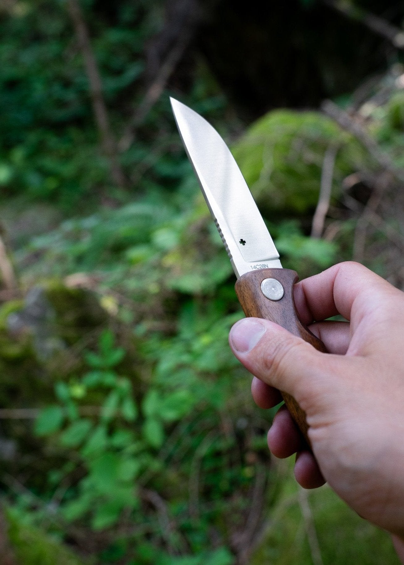 Der ergonomisch gestaltete Walnussgriff, der für Komfort und sicheren Halt sorgt, ist ideal für Benutzer aller Erfahrungsstufen, von Anfängern bis hin zu erfahrenen Profis. Dieses Halbtang-Messer ist Ihr zuverlässiger Begleiter für präzise Aufgaben in der freien Natur.